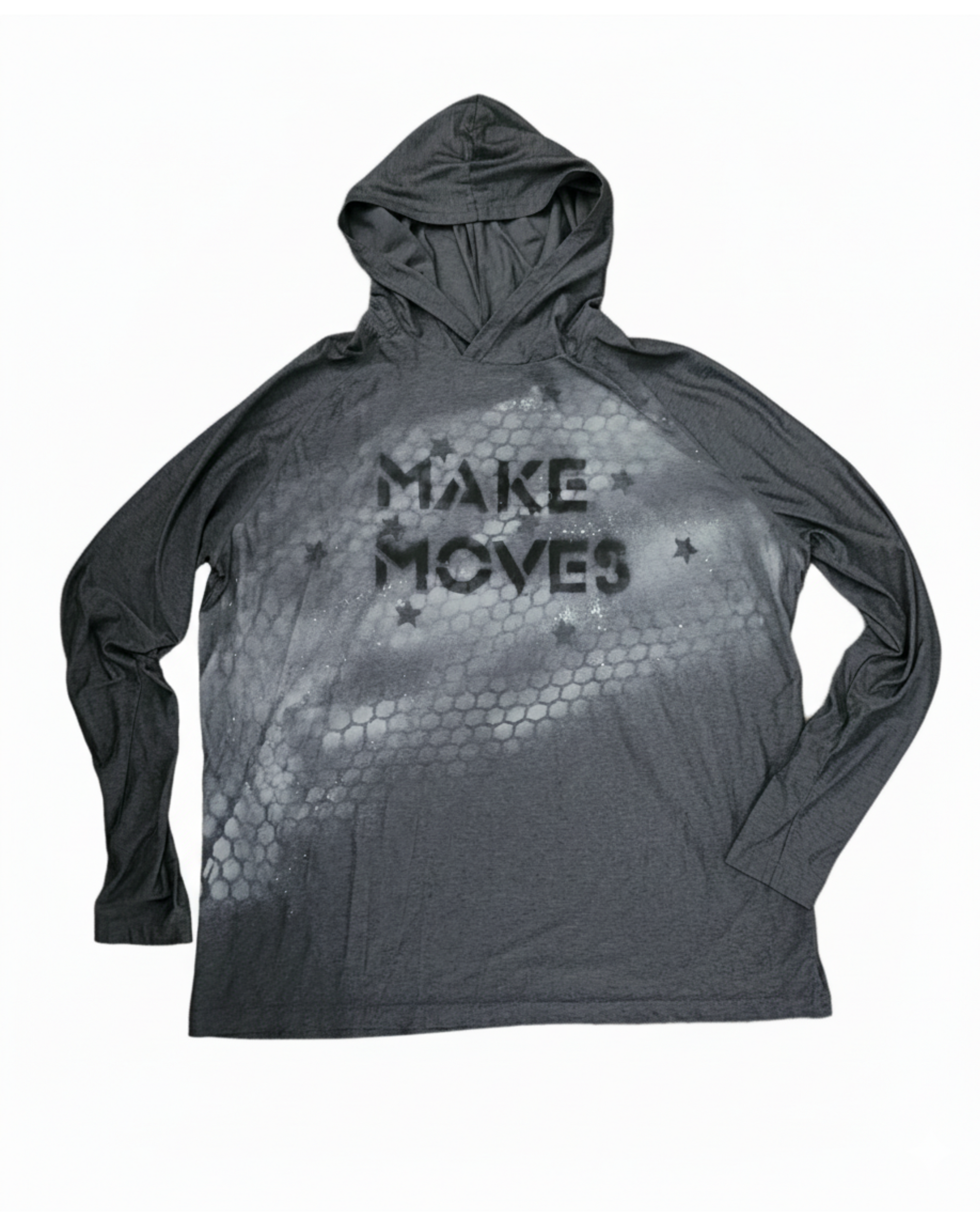 The Smoked Honeycomb Pullover blends style and performance. Crafted from polyester, it’s comfortable, flexible, and breathable — perfect for moving with you through any grind. The smoky honeycomb fade design with bold MAKE MOVES stencil and scattered stars creates a one-of-a-kind look that captures raw street energy. Whether you’re working, creating, or just out making moves, this hoodie has the fit and feel to back you up every day.